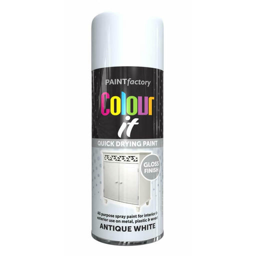 Colour It400ml Antique White Gloss Finish Quick Drying Paint All Purpose Spray Paint For Interior & Exterior Use On Metal, Plastic & Wood
