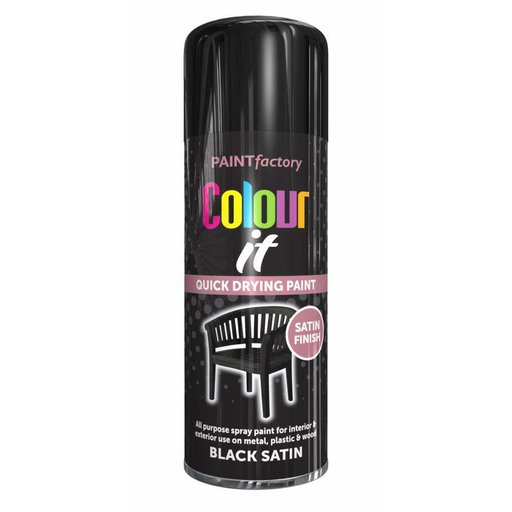 Colour ItProduct Code: 6285 400ml Black Satin Quick Drying Paint All Purpose Spray Paint For Interior & Exterior Use On Metal, Plastic & Wood
