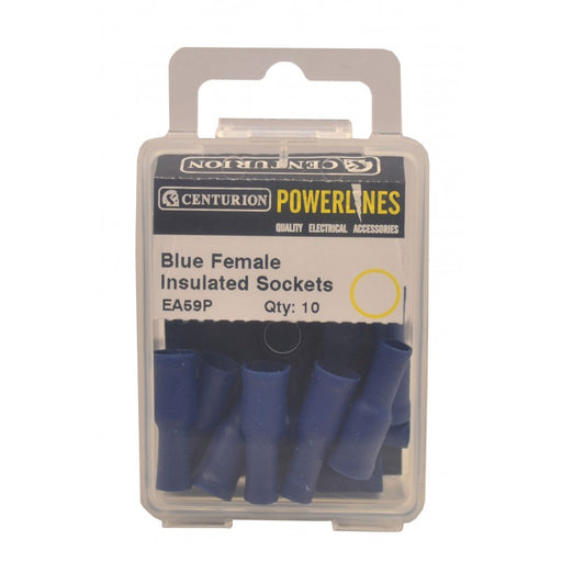 CenturionProduct Code: EA59P SIZE: 26 x 4mm Dia / 1.04 - 2.63mm2 conductor COLOUR: Blue Female Pack of 10 For excellent conductivity and resistance to corr...