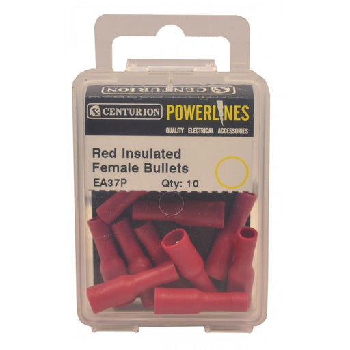 CenturionProduct Code: EA37P SIZE: 26 x 4mm Dia / 0.25 - 1.65mm2 conductor COLOUR: Red Female Pack of 10 For excellent conductivity and resistance to corro...