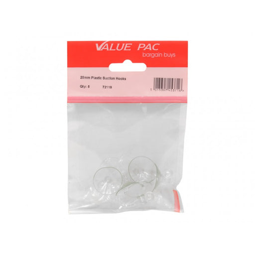Value PacProduct Code: 72119 Inner Pack Quantity: 4 Clear Plastic 25mm Suction Hook