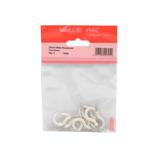 Value Pac9 Pack 25mm White Shouldered Cup Hooks