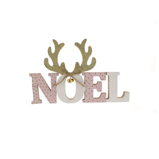 Festive MagicProduct Code: P039542 26cm wooden pink and white noel with gold antlers Hanging decorations