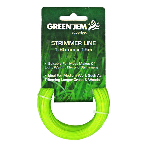 Green JemCode: GSAC-065C-NEW2 Strimmer Line Thickness: 1.65mm Length: 15m Suitable for most makes of lightweight electric strimmer's Ideal for medium work ...