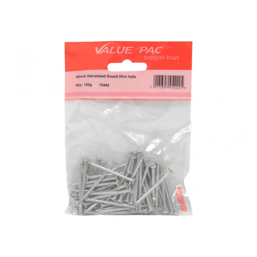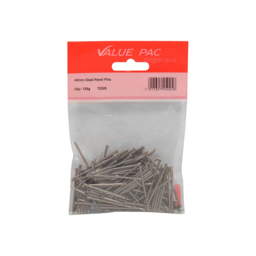 Value PacProduct Code: 72320 Inner Pack Quantity: 100 40mm Steel Panel Pins 100g