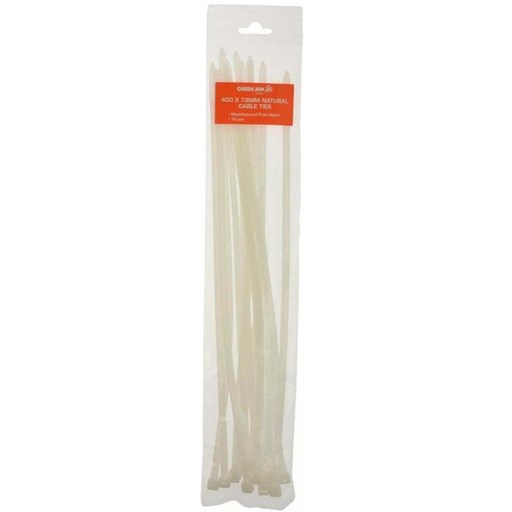 Green JemProduct Code: HWCT400N Green Jem Garden Pack of 12 Natural White Cable Ties Size: approx. 400 x 7.6mm Nylon Weather Proof