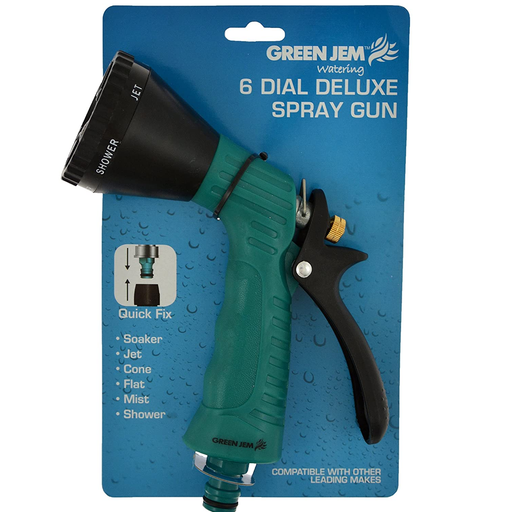 Green JemIdeal for watering your garden & washing cars, trucks, caravans etc. Features 6 different spray patterns Compatible with other leading brands.