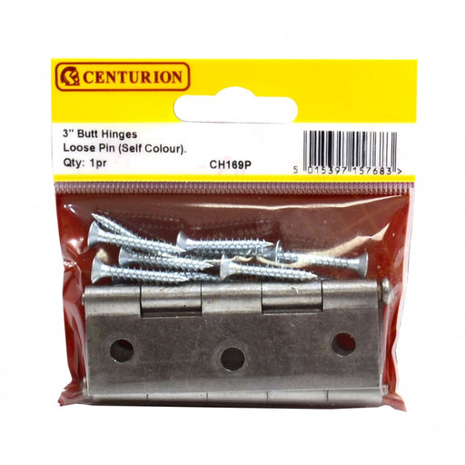 CenturionProduct Code: CH169P Inner Pack Quantity: 1 Pair 75mm SC Loose Pin Steel Butt Hinges (1 pair)