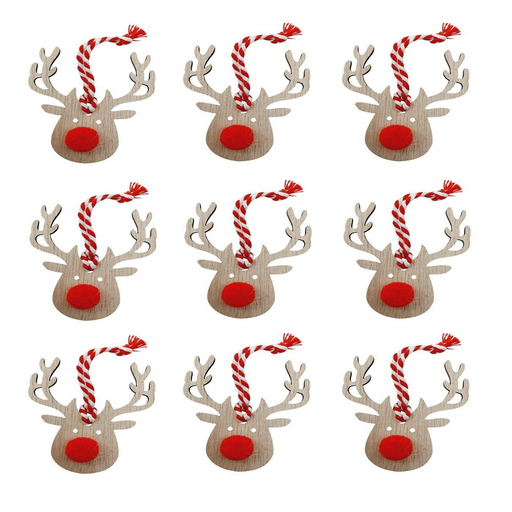 Festive MagicCode: XM1260 9pk Wood Construction Christmas Tree Decoration Rustic Red Nose