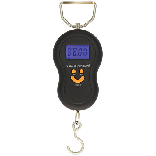 Angling PursuitsProduct Code: AP-FU-SCALES-E1 LCD screen Displays in lbs and kgs Compact size Tare weight function Auto 60 second shut off Stow-away hook 2 x AA ...