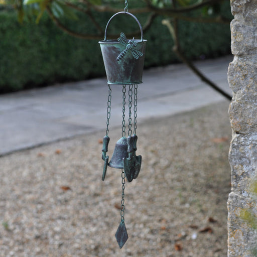 WoodlodgeCODE: YBUCKTOMOB Size: 10 x 10 x 70cm Weathered look bucket and tools mobile can be hung in gardens and porches. The tools bucket in the wild to...