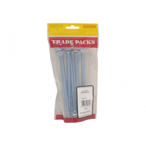 Trade PacksProduct Code: 78100 Inner Pack Quantity: 5 SIZE: M10 x 150mm BRAND: TRADE PACKS COLOUR: Zinc Plated Pack of 5 Ideal for timber to timber joining...