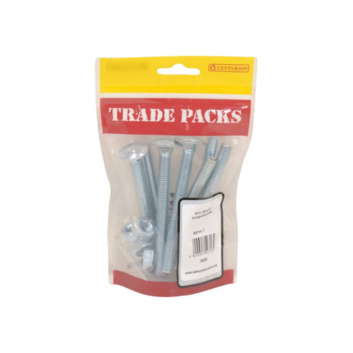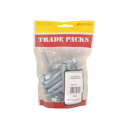 Trade PacksProduct Code: 78098 Inner Pack Quantity: 9 SIZE: M10 x 75mm BRAND: TRADE PACKS COLOUR: Zinc Plated Pack of 9 Ideal for timber to timber joining,...