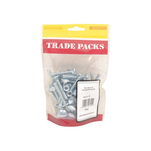 Trade PacksProduct Code: 78087 Inner Pack Quantity: 40 SIZE: M6 x 40mm BRAND: TRADE PACKS COLOUR: Zinc Plated Pack of 40 Ideal for timber to timber joining...