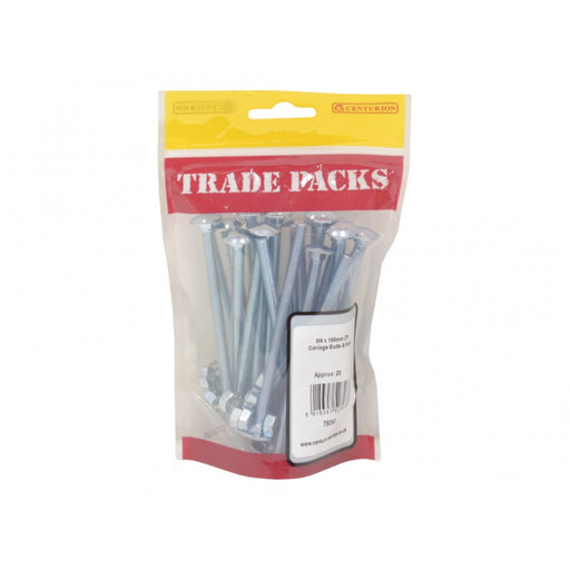 Trade PacksProduct Code: 78099 Inner Pack Quantity: 7 SIZE: M10 x 100mm BRAND: TRADE PACKS COLOUR: Zinc Plated Pack of 7 Ideal for timber to timber joining...