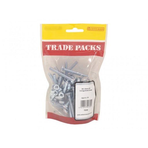 Trade PacksProduct Code: 78088 Inner Pack Quantity: 35 SIZE: M6 x 50mm BRAND: TRADE PACKS COLOUR: Zinc Plated Pack of 35 Ideal for timber to timber joining...