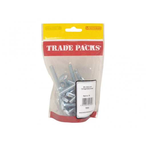 Trade PacksProduct Code: 78092 Inner Pack Quantity: 18 SIZE: M8 x 50mm BRAND: TRADE PACKS COLOUR: Zinc Plated Pack of 18 Ideal for timber to timber joining...