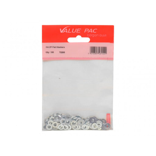 Value PacProduct Code: 72285 Inner Pack Quantity: 100 Zinc Plated M4 Flat Washers