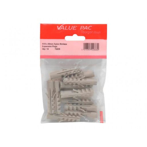 Value PacProduct Code: 72235 M10 x 50mm Nylon Rimless Expansion Plugs