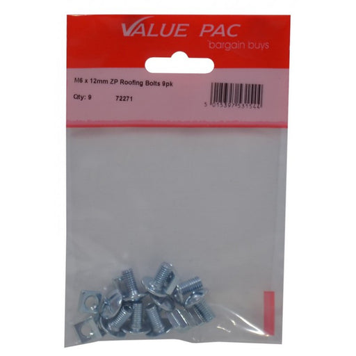Value PacProduct Code: 72271 Inner Pack Quantity: 9 M6 x 12mm ZP Roofing Bolts
