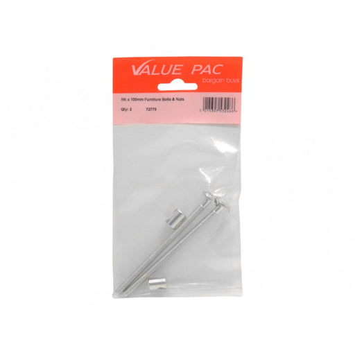 Value PacProduct Code: 72779 Inner Pack Quantity: 2 M6 x 100mm Furniture Bolts & Nuts 2pk