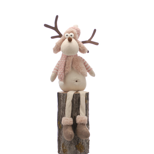 Festive MagicProduct Code: P039431 61cm Sitting With dangly legs Plush light brown reindeer with pink & white jumper and hat