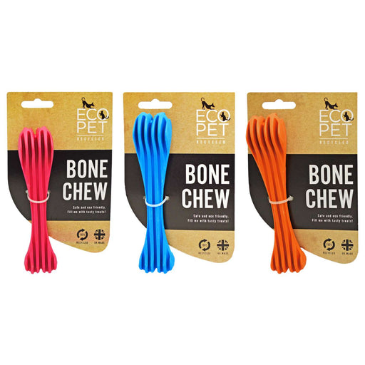 EcopetPartly recycled polymer safe and eco friendly chew toy Approximate length 17 cm Fill with treats Suitable for all breeds and ages Three assorted...