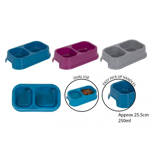 RSWThis double feeder pet bowl is an essential item for any pet owner and can be used for water and wet or dry food. Capacity 250ml Material PP Appr...