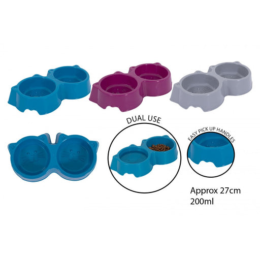 RSWThis plastic double cat face pet bowl is an essential item for any pet owner and can be used for water and wet or dry food. Capacity 200ml approx...