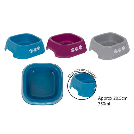 RSWThis plastic printed square pet bowl is an essential item for any pet owner, can be used for water or wet or dry food and features a white paw prin...