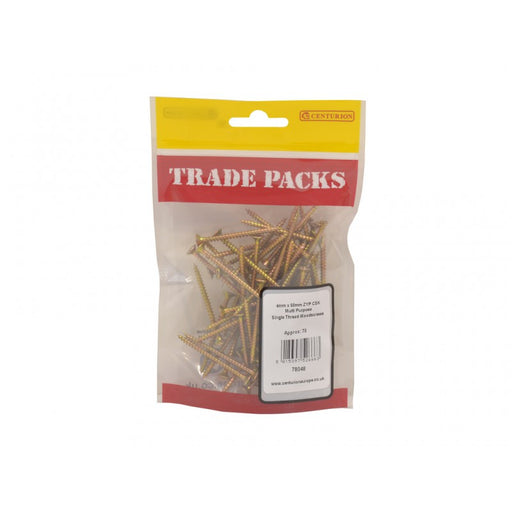 Trade PacksProduct Code: 78048 SIZE: 4 x 50mm COLOUR: Zinc Yellow Passivated finish BRAND: TRADE PACKS Pack of 70 Suitable for use with many materials includ...