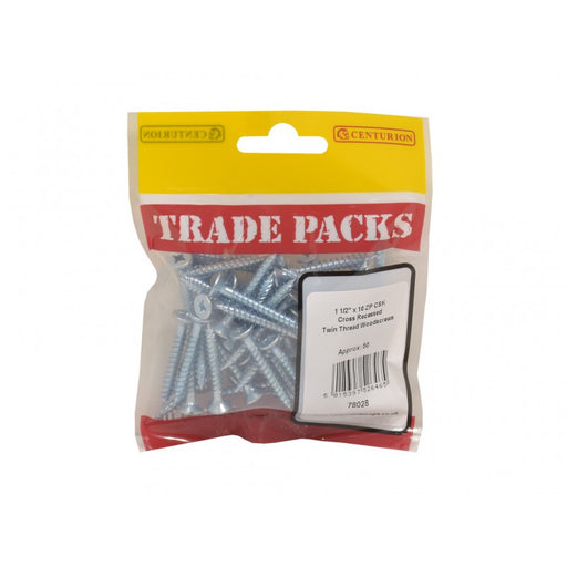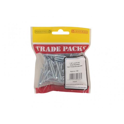 Trade PacksProduct Code: 78009 SIZE: 1½" x COLOUR: Zinc Plated BRAND: TRADE PACKS Pack of 100 Suitable for use with many materials Countersunk heads designed...