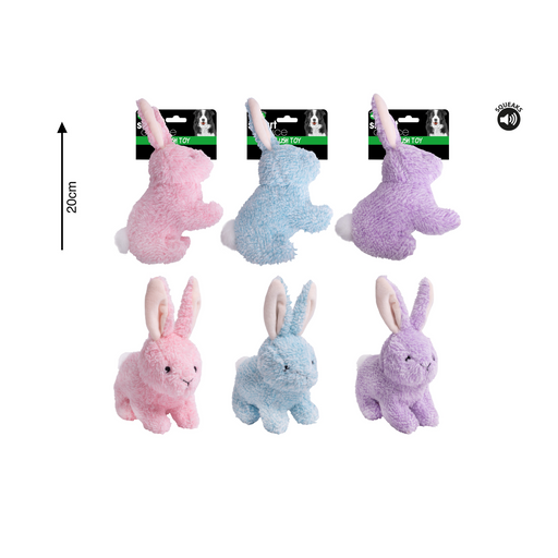 Smart ChoiceCode: SC1128 Internal squeaker Approximate measurements 20cm x 18cm Three colours available: Pink, Blue and Purple This plush dog toy is designe...