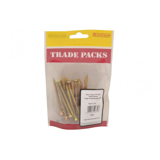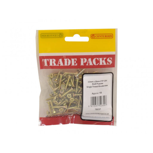 Trade PacksSIZE: 4 x 20mm COLOUR: Zinc Yellow Passivated finish BRAND: TRADE PACKS Pack of 150 Suitable for use with many materials including timber, chipboa...