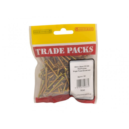 Trade PacksProduct Code: 78045 Inner Pack Quantity: 100 SIZE: 4 x 35mm COLOUR: Zinc Yellow Passivated finish Suitable for use with many materials including t...