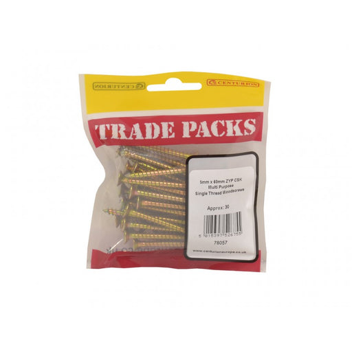 Trade PacksProduct Code: 78057 SIZE: 5 x 60mm COLOUR: Zinc Yellow Passivated finish BRAND: TRADE PACKS Pack of 30 Suitable for use with many materials includ...