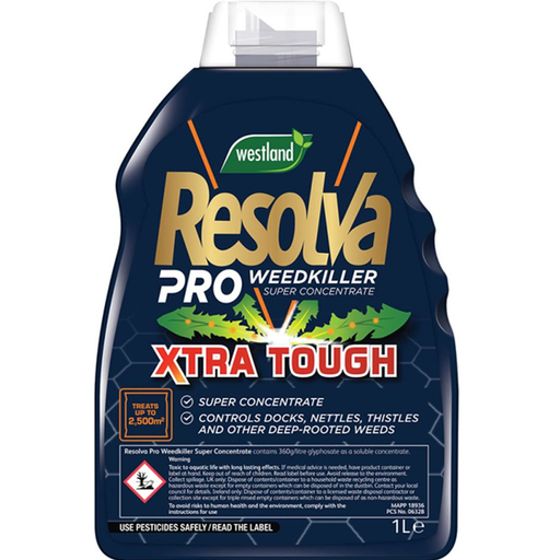 WestlandProduct Code: 20300520 Resolva Pro Xtra Tough Super Concentrate is a super strength weedkiller concentrate. It is therefore ideal for clearing l...