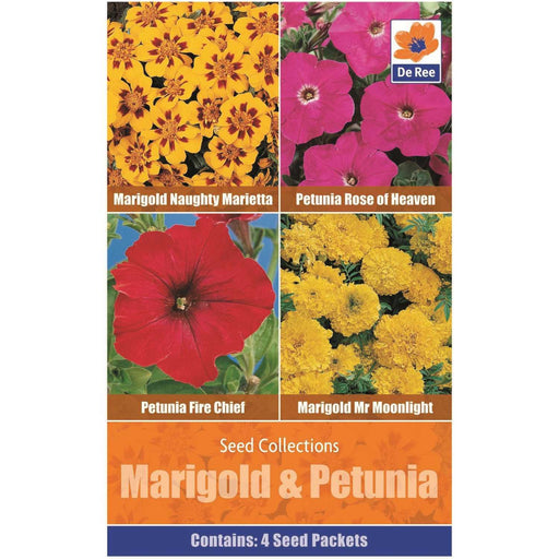 De ReeContains: 4 Seed packets Marigold naughty marietta Petunia rose of heaven Petunia fire cheif Marigold Mr moonlight Outdoor Planting Marigolds: A...