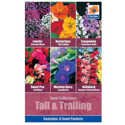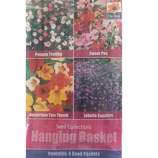 De ReeContains: 4 Seed packets Petunia trailing Sweet pea Nasturtium tom thumb Lobelia sapphire Outdoor Planting Nasturtium: March - May Sweet Pea: ma...