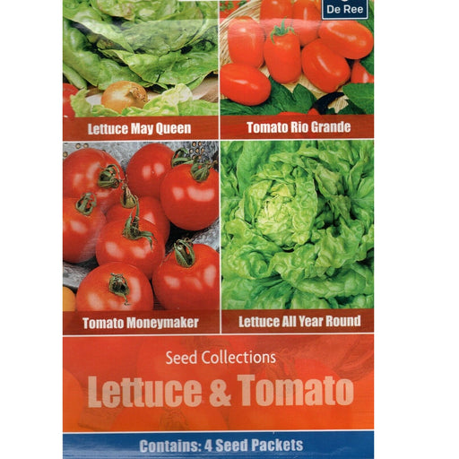 De ReeContains: 4 Seed packets Lettuce may queen Tomato Rio grande Tomato moneymaker Lettuce all year round