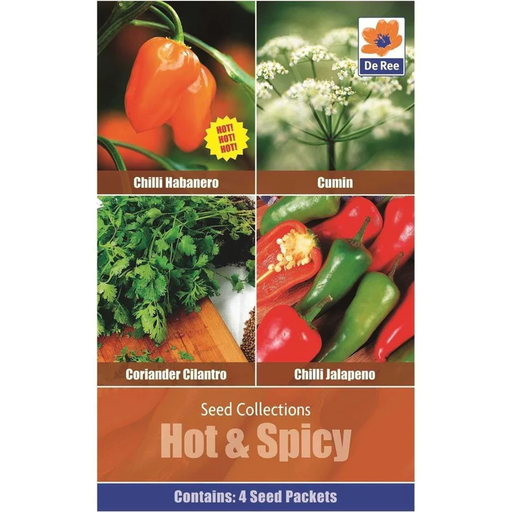 De ReeContains: 4 Seed packets Chilli Habanero Cumin Coriander cilantro Chilli jalapeno