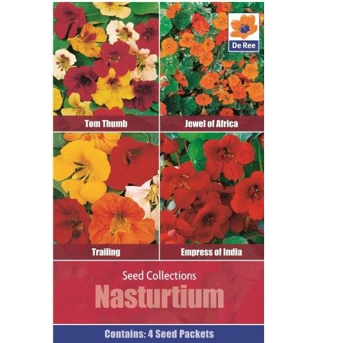 De ReeContains: 4 Seed packets Tom Thumb Jewel of Africa Trailing Empress of India Outdoor Planting March - May