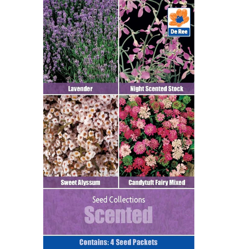 De ReeContains 4 seed packets Lavender Night scented stock Sweet Alyssum Candytuft fairy mixed Outdoor Planting Lavender: April - July Stock: March - ...