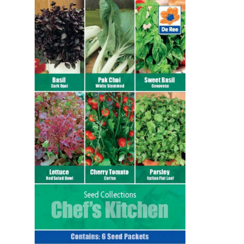 De ReeContains 6 Seed Packets Basil (Dark Opal) Pak Choi (White Stemmed) Sweet Basil (Genovese) Lettuce (Red Salad Bowl) Cherry Tomato (Cerise) Parsley ...